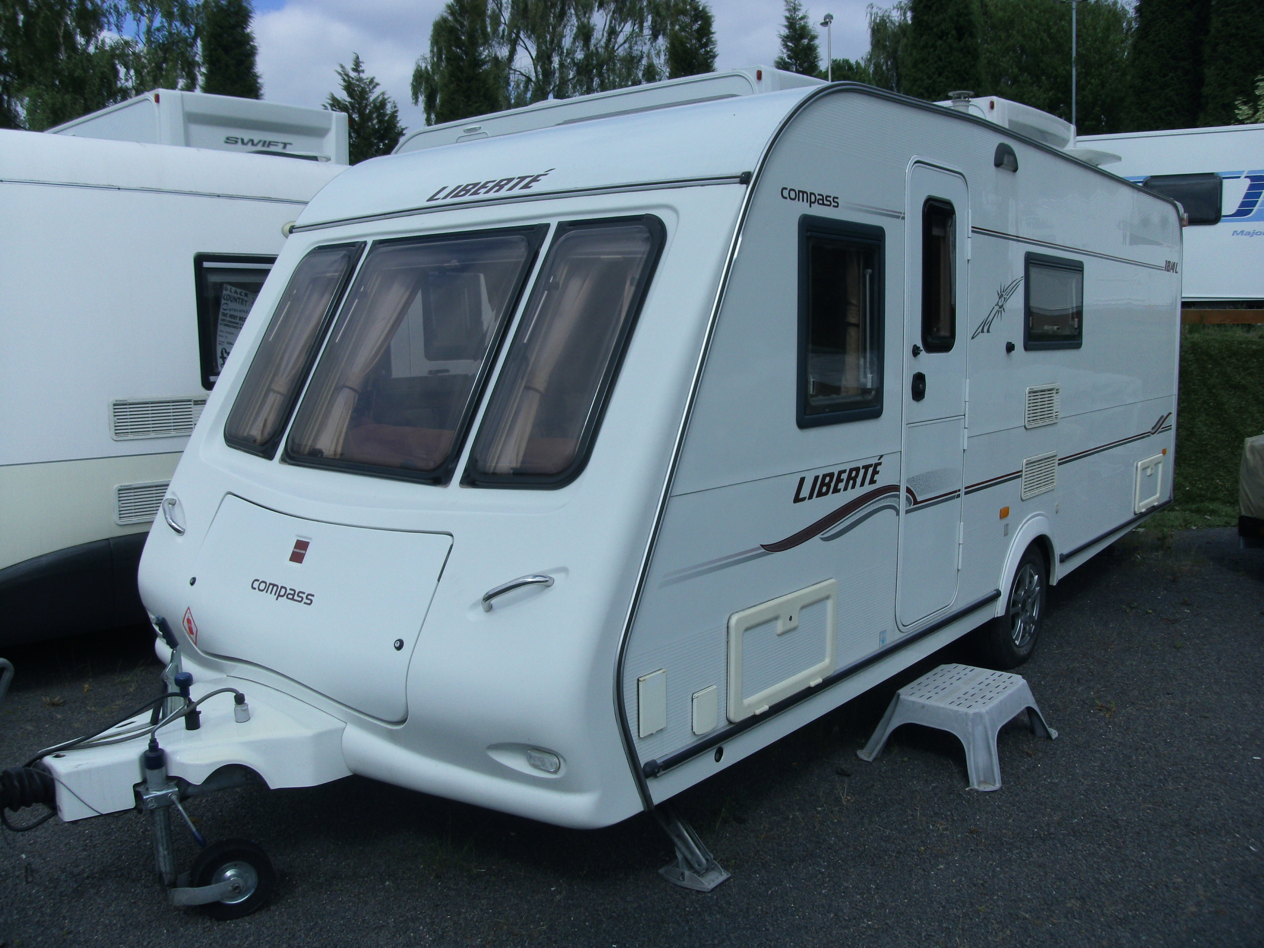 This Compass has a layout that you don't see too often and features a fixed bed across the rear, a central washroom and kitchen, and an 'L' shaped front seating area. The Liberte was a dealer special and it shows due to the extra specification that it has. It has been well looked after and really feels like a home from home. For more information please contact us on 01384 413336 and ask for a member of the sales team.